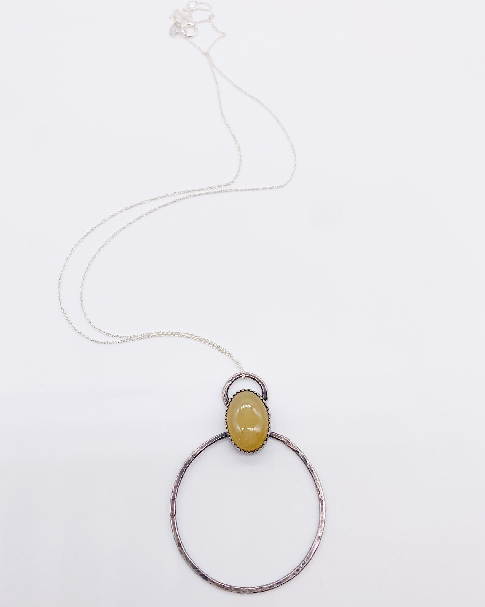 Vintage Navajo handmade sterling silver yellow agate hoop pendant necklace with an 18inch sterling silver chain. Stamped sterling.