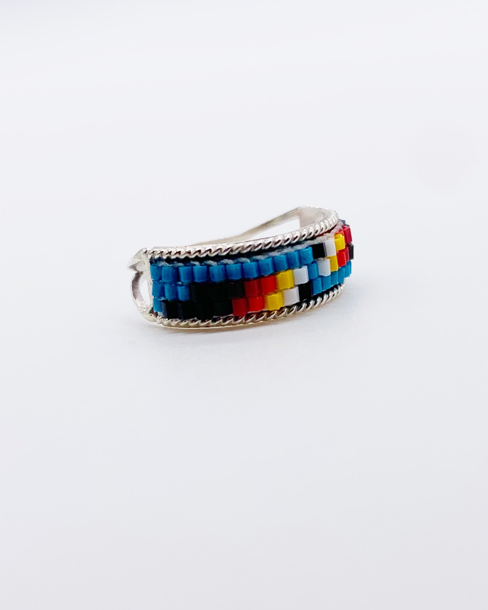 Navajo handmade sterling silver bead row band ring. Stamped sterling. Handmade by Navajo artisan Lucille Ramone.