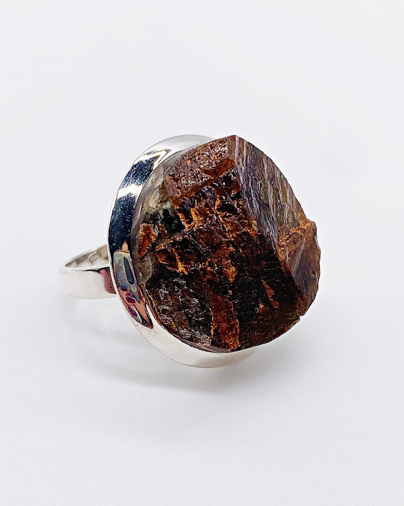 Sterling silver raw orange labradorite ring. Stamped sterling.