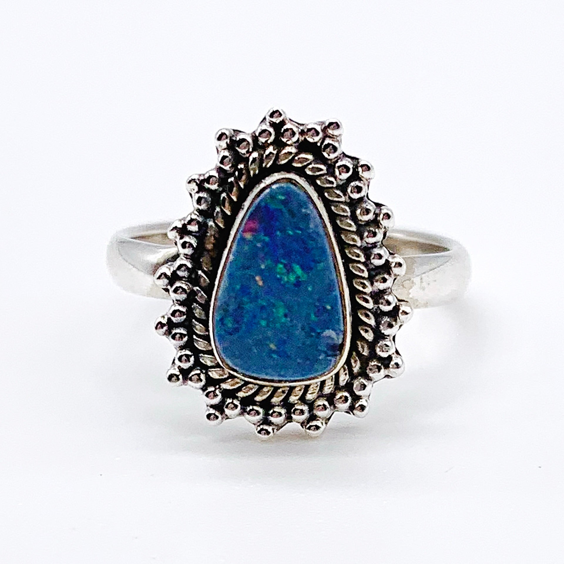 AUSTRALIAN OPAL STERLING SILVER RING ⋄ SIZE 5
