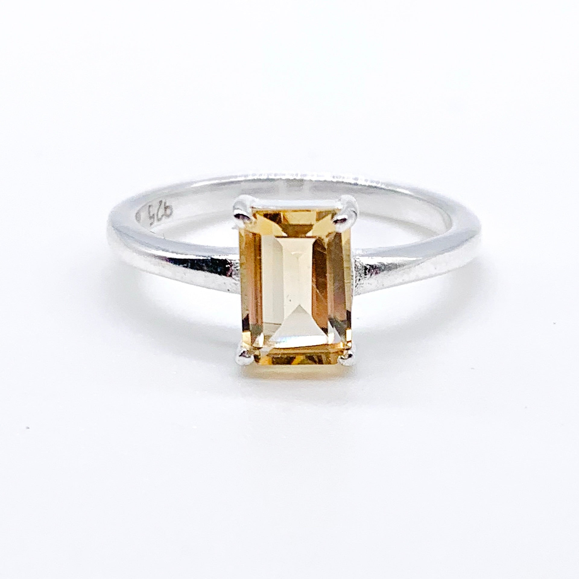 Sterling silver rectangle citrine block ring. Stamped sterling silver.