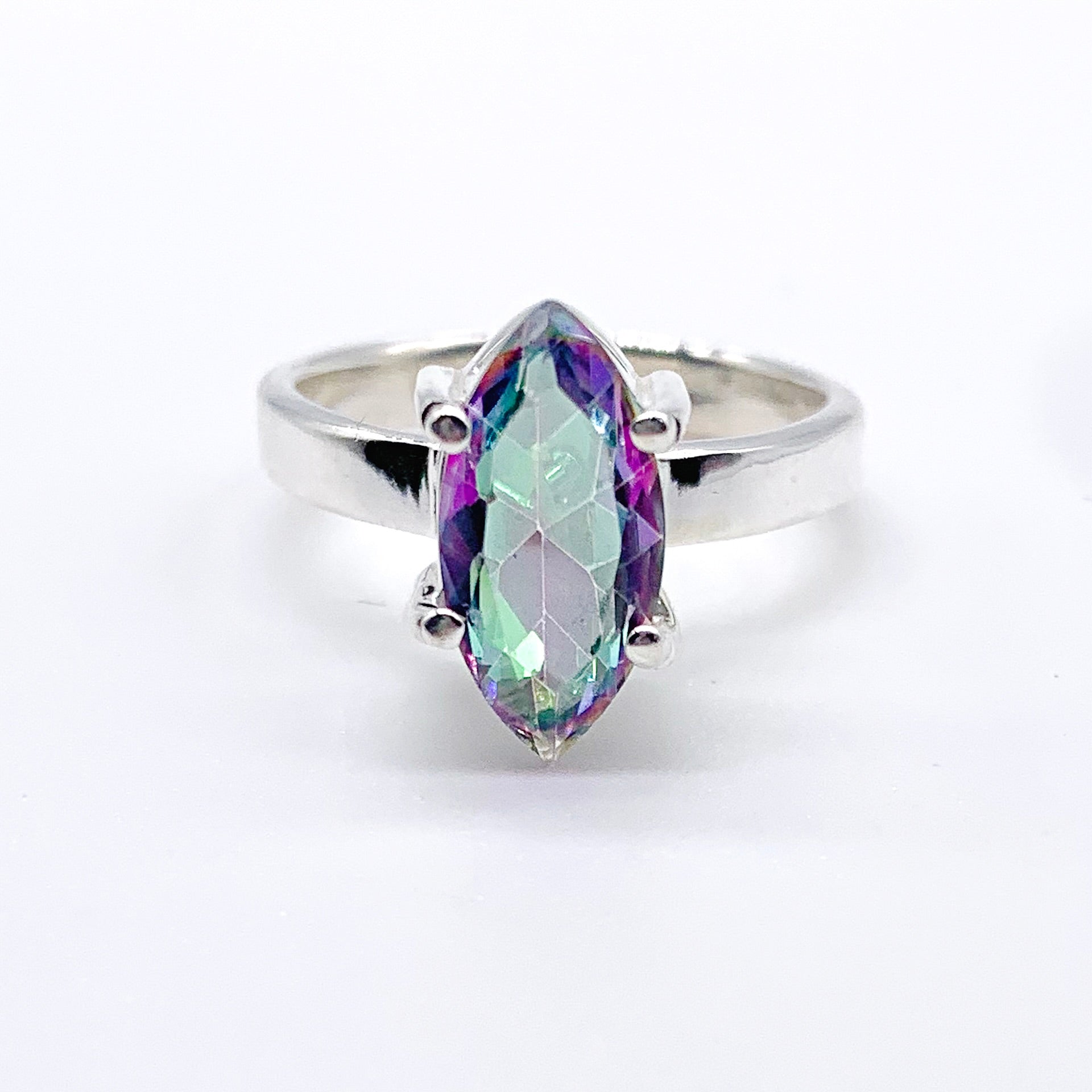 Sterling silver faceted marquise shaped mystic topaz. Stamped sterling.