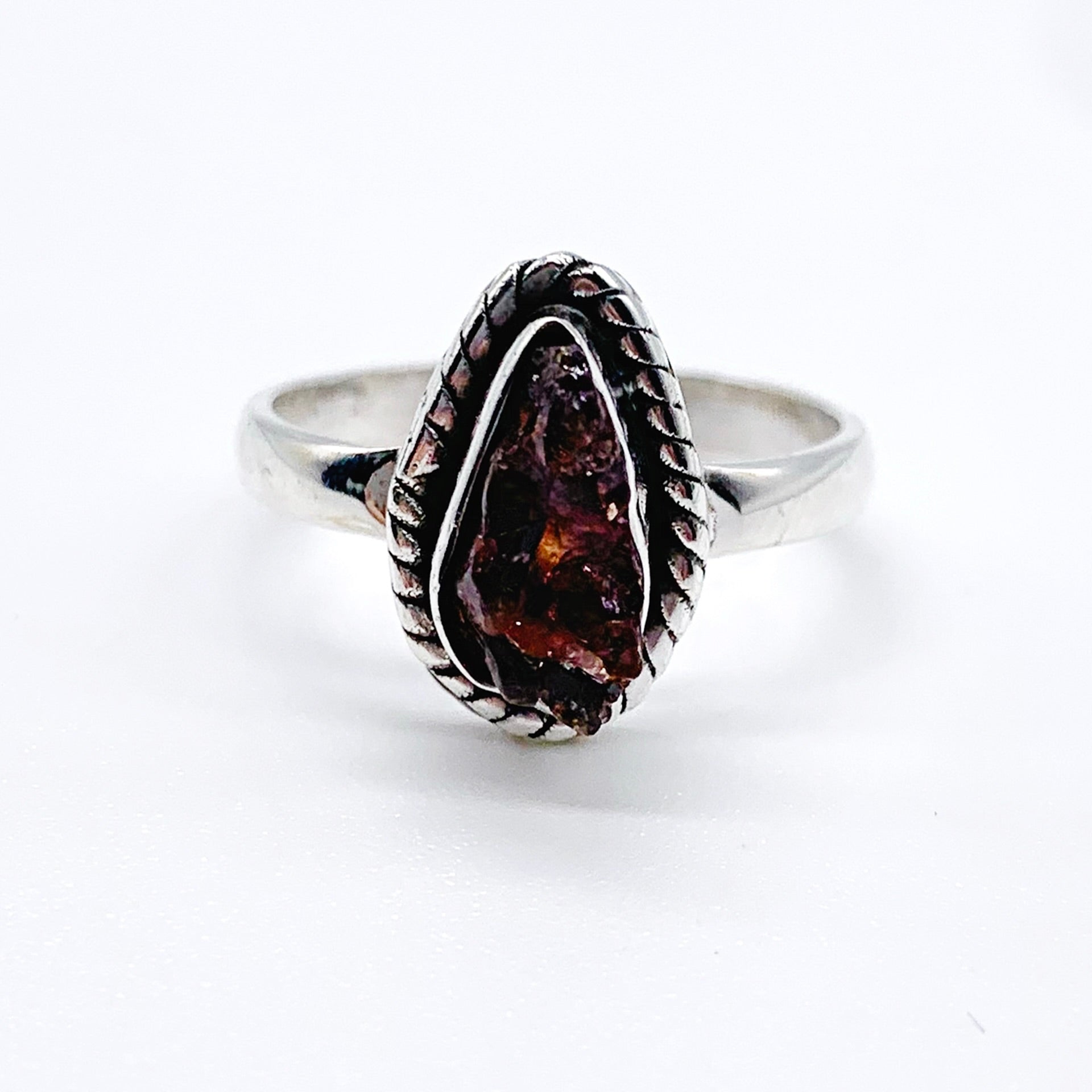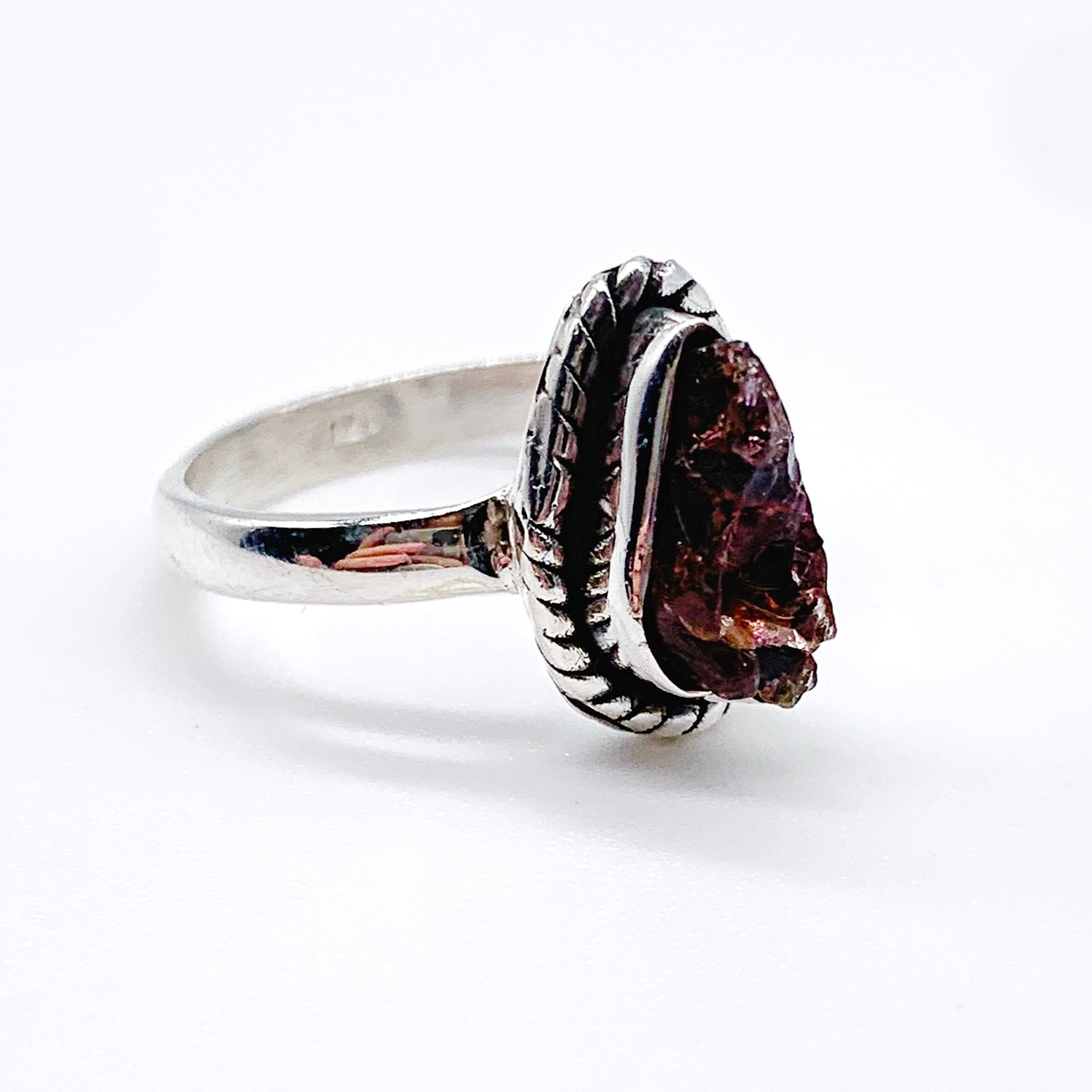 RAW RUBY TOURMALINE STERLING SILVER RING ⋄ SIZE 6.25 & 7