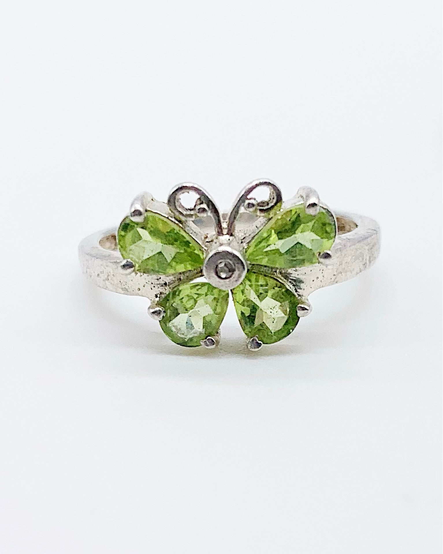 Vintage sterling silver peridot butterfly cluster ring. Stamped sterling.